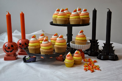 The swirls aren’t perfect and in places there is unevenness, but that’s ok. It’s a first attempt and I love’m. I also completed a couple Candy Corn mini-cupcakes just to see what that would be like. Oh, they were darling.