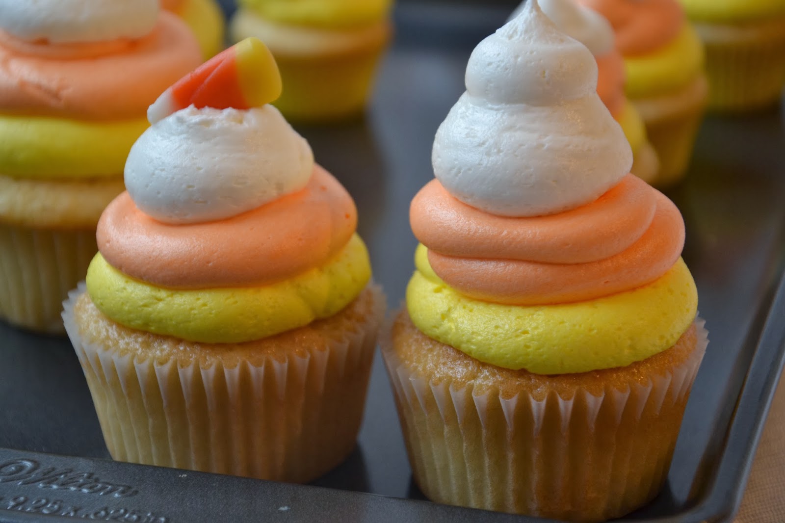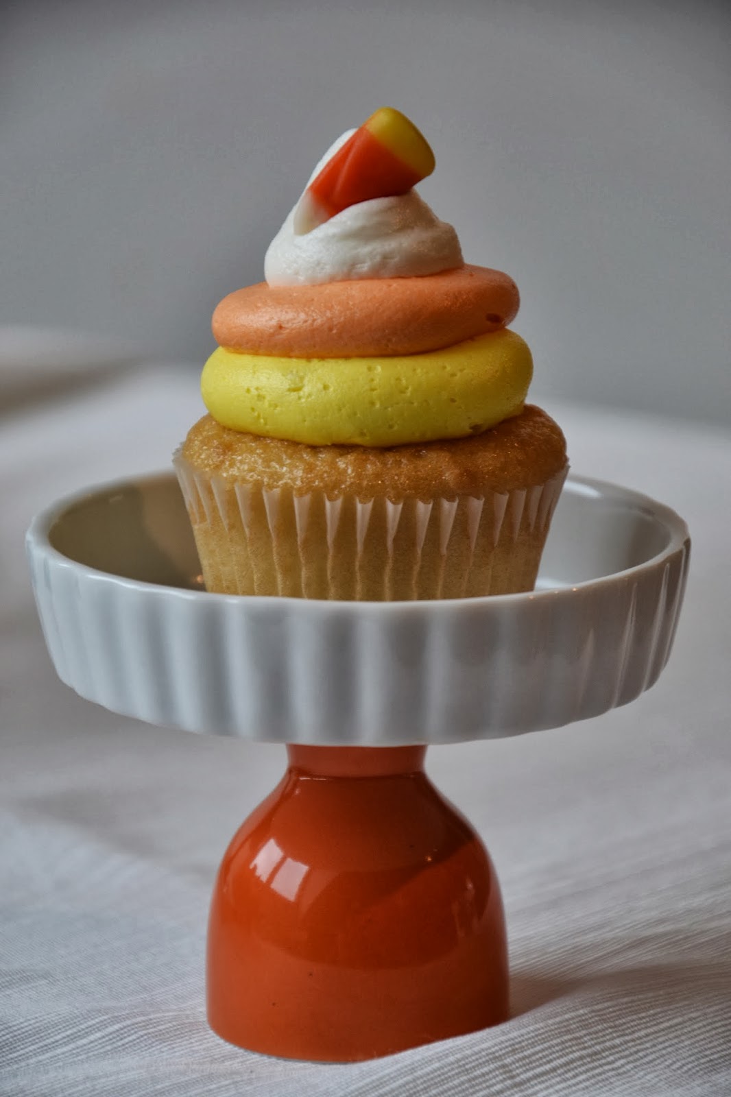 Here’s the thing… the test cupcakes only took about half the batter, leaving plenty of standard-sized cupcakes to decorate. And October is a perfect time to explore a Candy Corn Cupcake. I’ve seen this style of cupcake on Pinterest, so I knew it was doable.
