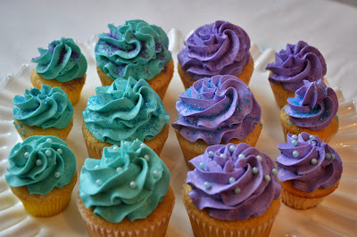 I have been waiting for just the right time to bake these cupcakes…and today was the day. This project started when a client contacted me regarding vanilla birthday cupcakes in turquoise and/or lavender. A vanilla cake is the ideal launch pad for anything sporting something called Bahama Blue with shimmery sprinkles.