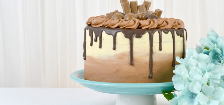 Triple-layer Dark Chocolate Cake, Peanut Butter Buttercream Filling, Whipped Chocolate Ganache and Peanut Butter Ombre, Lindt Chocolate Drizzle with Whipped Chocolate Buttercream Roses and a flurry of So Many Chocolates! This is a birthday...