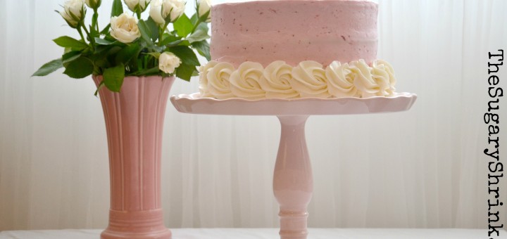 Triple-layer Strawberry Cake, Cream Cheese Filling, and a Strawberry Cream Cheese Frosting with a garnish of Vanilla Buttercream Roses And then I wanted to bake a Strawberry Layer Cake. In November. Without fresh strawberries....