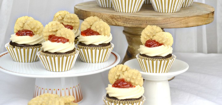 Chocolate Cupcakes, Peanut Butter Buttercream, Strawberry Jelly, and a pair of Peanut Butter Cookies This is comfort food compounded! Chocolate Cupcakes qualify as medicine, amiright? What happens when we add peanut butter and jelly...
