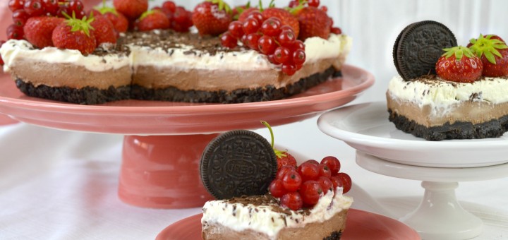 Oreo Cookie Crumb Crust, Chocolate Cheesecake, and Whipped Cream with Lindt Chocolate Shavings, Fresh Fruit, and Oreo Cookies It’s hot here. Seriously hot. And I don’t want to fire up the oven. That makes...