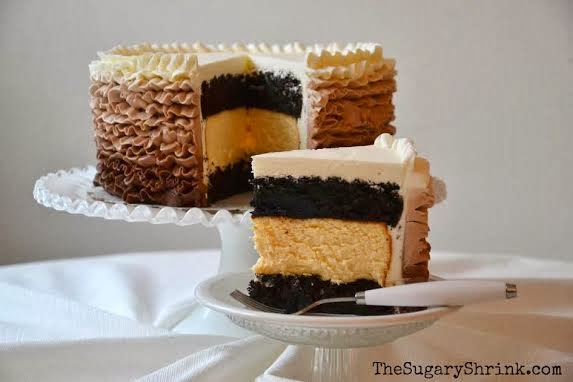 This cake was particularly heavy…literally. The middle layer of cheesecake weighs in at just over two pounds…not including the layers of chocolate cake or the buttercream.