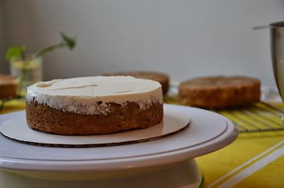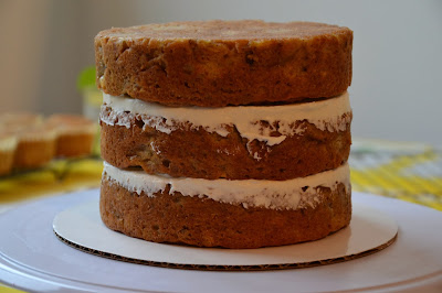 Triple-Layer, 6″ round Hummingbird Cake with Vanilla Buttercream and Sugar-shaped Leaves.